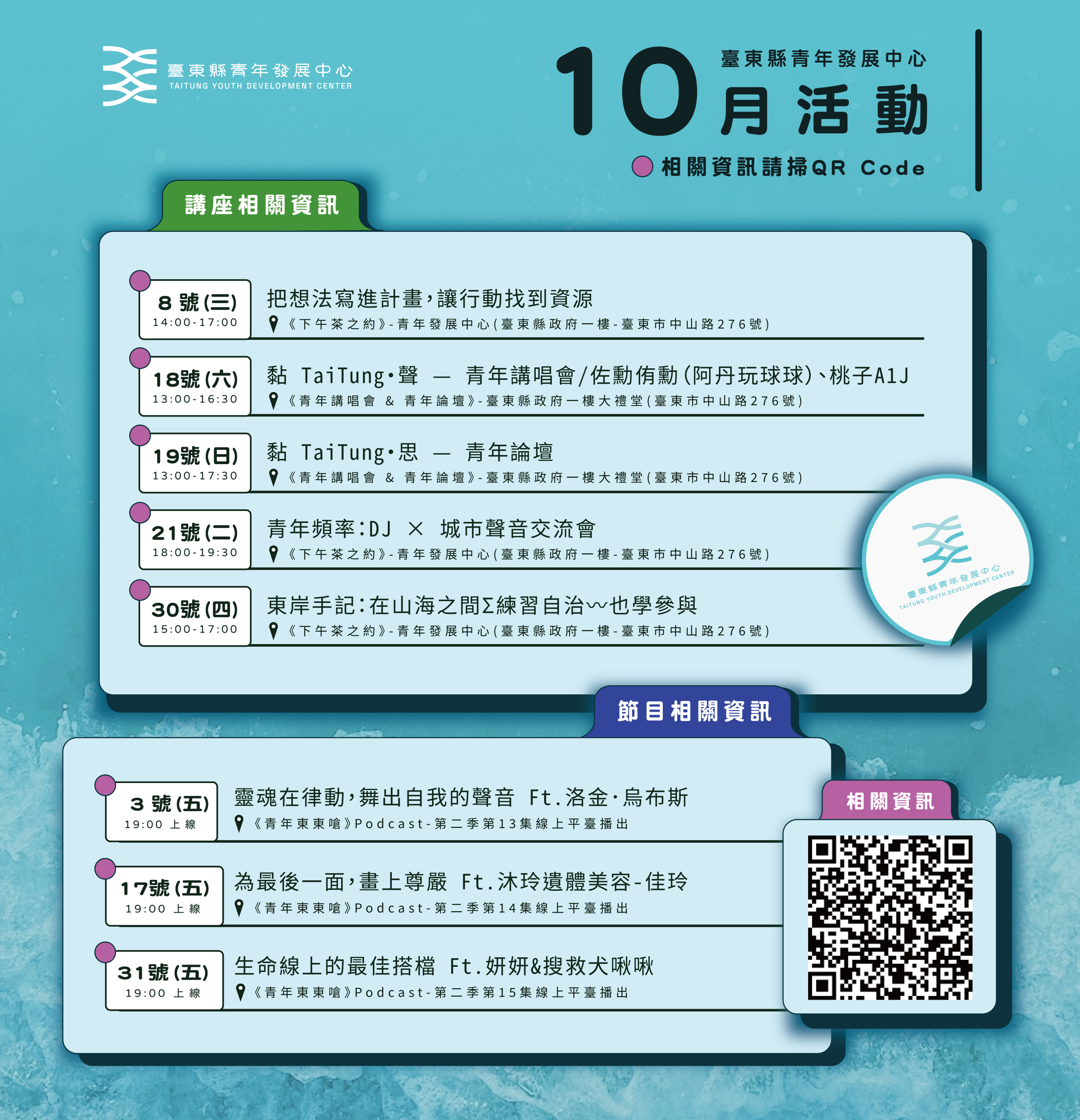 臺東縣青年發展中心! 十月活動✸
